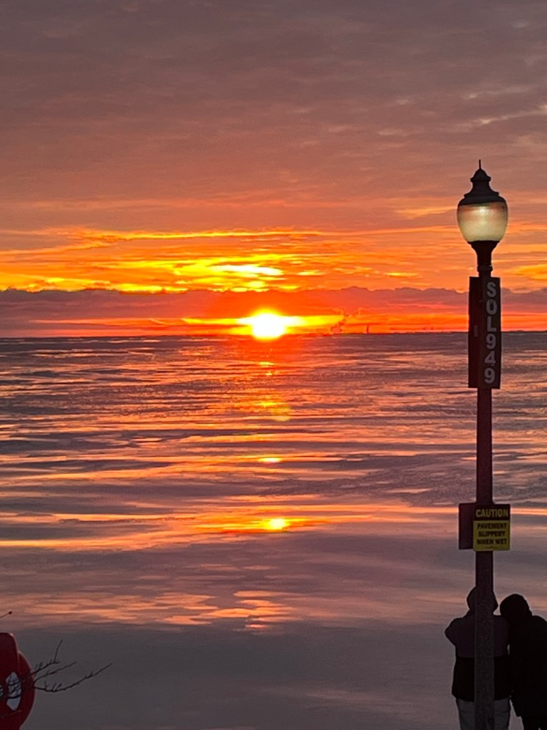 I like New Year’s because it’s a holiday everyone celebrates. I like to shout out “Happy New Year!” to everyone, not worrying whether they celebrate or not, because they do! And almost everyone does at least a small thing to mark the event. In my life, for NYE, I have gone to bar parties, celebrated in a cruise ship atrium, brought in the new millennium with my 5 month old at an all-inclusive in Nuevo Vallarta, participated in a progressive neighborhood New Years Eve party, hosted a pre-teen sleep over, sat on the couch and watched my local news hosts get publicly tipsy and canoodle while waiting for the ball to drop. I have prepared and eaten all manner of exotic party food like steak tartare, ceviche and TGIF jalapeno poppers. I have opened countless bottles of sparkling wine and watched all the Godfathers. This year I wanted to do a healthy thing and sort of reprise an experience I had in Hawaii where I watched the sunrise and sunset in one day. I conceived that this year, we could eat whatever Christmas party treats were still in the fridge and watch whatever was on TV but first I wanted to see the sunset on New Years Eve and then the sunrise on New Years Day over Lake Michigan. The sunset was a bust; first, I realized I did not want to drive to the lake or the beach or anywhere in downtown Chicago at 4 pm on a weekday so I found what I thought would be the perfect location in a vast and empty parking lot with clear views near my house. But the whole day was sleeting, cold and dark and I only had to look out the window to know it was pointless. Would the sun be out tomorrow? We got to bed at a decent hour and woke up at 6 am on New Year’s Day to drive the 30 minutes to Chicago’s Adler Planetarium. Do you ever have the experience that you are getting up at an hour that you think, certainly no one else is awake? Like when you have an early flight and get to the airport at 4 am and think it is so dark and I am so tired and I didn’t really sleep and then the airport is a bustling and you feed off the energy and forget that it is only 4 am. That’s what happened at the lake. First, we drove up the long promontory drive, passing many good parking spots so my husband could go all the way around again because he thought he saw a secret drive. It was a pay parking lot I told him, but no matter. When we got back around, we had to park further away because apparently going to the lake to watch the sunrise on a 15-degree New Years Day morning is the thing to do in Chicago. A Chinese running club was using a drone to take and retake a group photo cheering in unison every time a new member jogged up. There were other couples and families bundled against the cold and a morning newsperson with a cameraman. And a shockingly hatless, gloveless man muttering and giggling to himself. (How did he get here I wondered, it’s at least a mile to any shelter.) It was a party. We took amazing photos to the east and took amazing photos to the west, the dawn light reflecting on Chicago’s mirrored skyline. It was spectacular. After a short time, we walked back to the car and drove to the iconic Lou Mitchell’s Loop diner for pancakes and coffee. It was heavenly. We chatted and smiled like we were on a date. We gave our waitress an extra good tip then drove home to our warm house, agreeing that we just started a new, New Year’s Day, tradition.